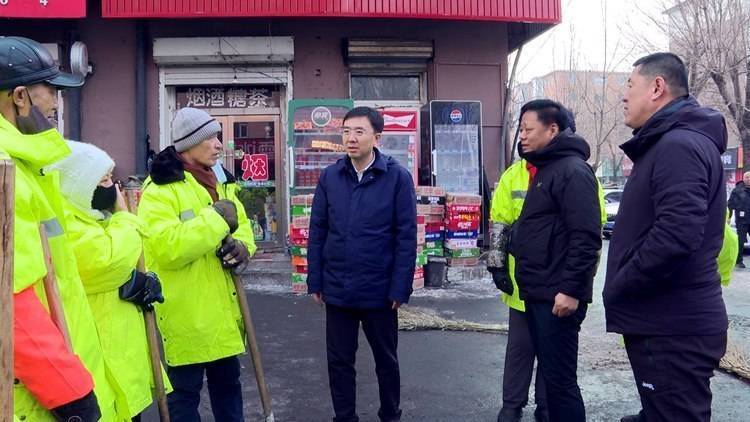 在向阳路路段,靳明对正在清理残雪的环卫工人常年坚守岗位、守护城市整洁的辛勤付出表示诚挚感谢并致以新春祝福,叮嘱大家注意防寒保暖,要求相关部门关心关爱环卫工人群体,切实完善一线作业保障措施,为环卫工人创造良好的工作生活条件。