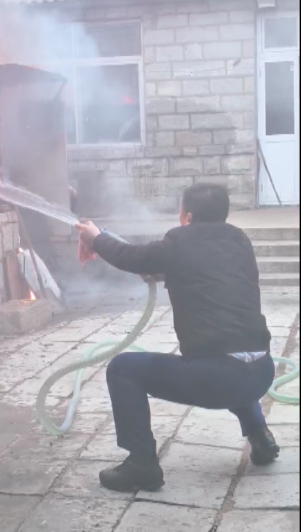 在扑救过程中,邢健思路清晰,先是对门房与杂物间之间的连接处进行喷水降温、阻隔火势,防止火焰烧穿门房窗户;随后又重点对杂物间与正房的交界处进行分隔保护。两处关键隔离点处理完毕后,他才集中力量对杂物间内部的明火发起总攻。经过十多分钟的奋力扑救,明火终于被彻底扑灭,险情得以初步控制。